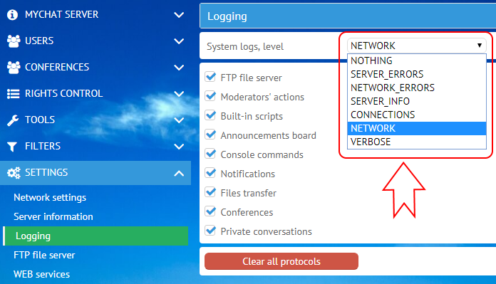 Log levels of MyChat system events