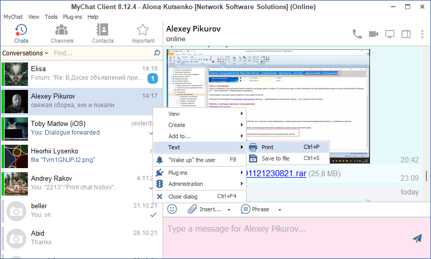 [*] (11.08.2021) MyChat Client's size decreased by 4 times because of the plugin for calls. Now the plugin is downloaded from the server when necessary.