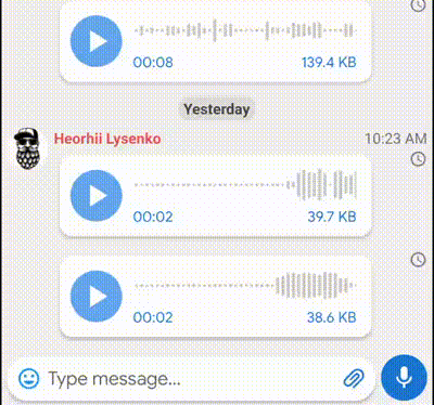 [+] (10.07.2024) (android) added an option to record voice messages in private dialogues and conferences. To do this, hold the record button. You can lock the button not to hold your finger on the screen during the record, and also cancel the record, if necessary;