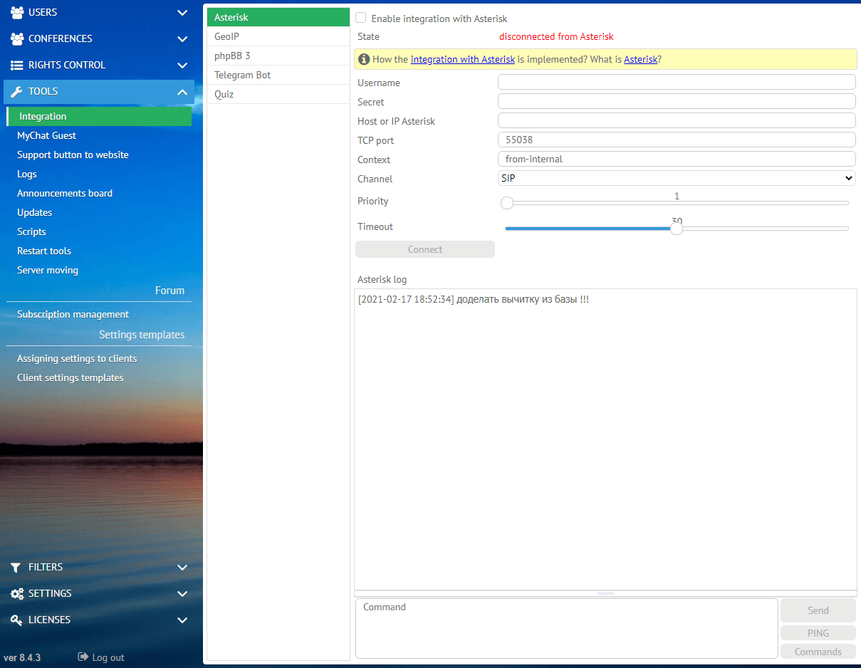 [+] (02.16.2021) integration with Asterisk to automate the calls between IP phones via chat;