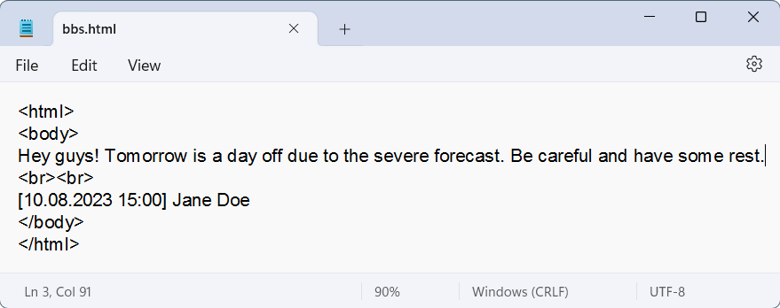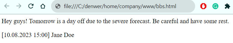 Also, the HTML file is created in "c:\denwer\home\company\www\bbs.html":