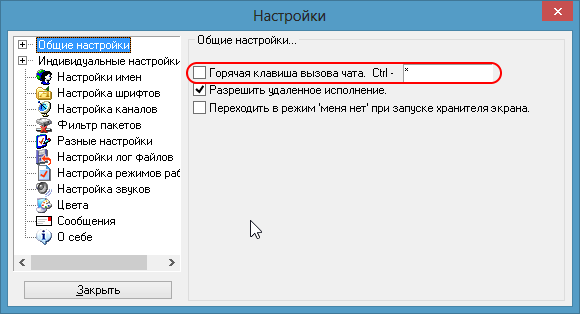 Горячая клавиша вызова окна чата не работает, даже если её изменить: