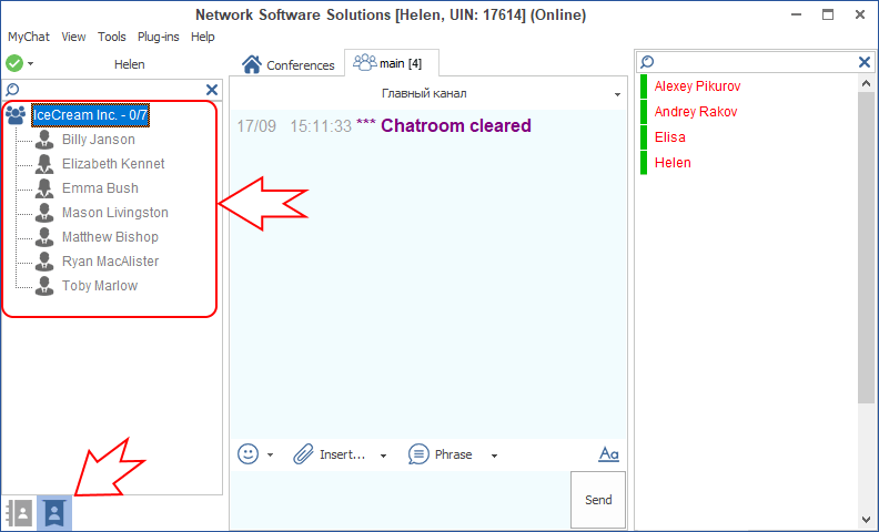 1. Create a common contact list; remove access to it for all rights groups, except administrators and directors. All registered users are in the common contact list. It is convenient for company management and administrators.
