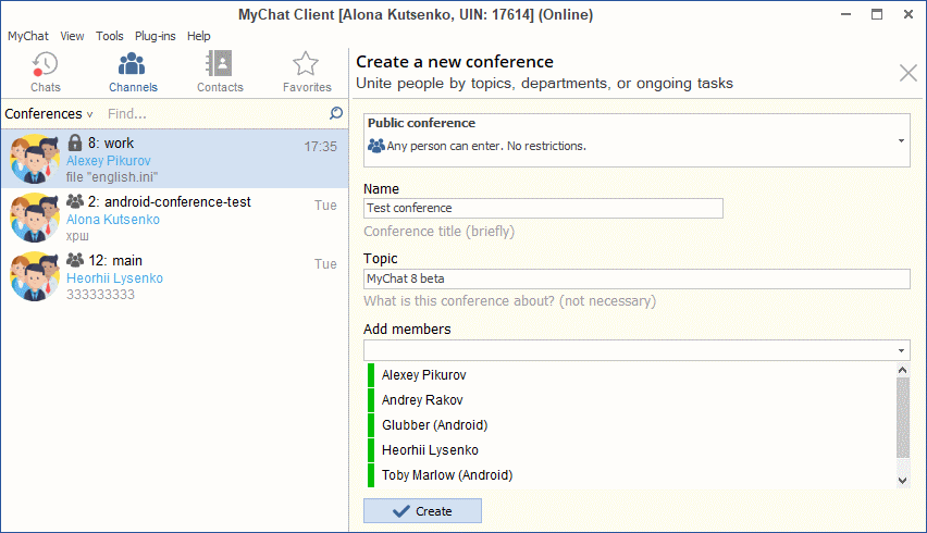 Creating new conference in MyChat