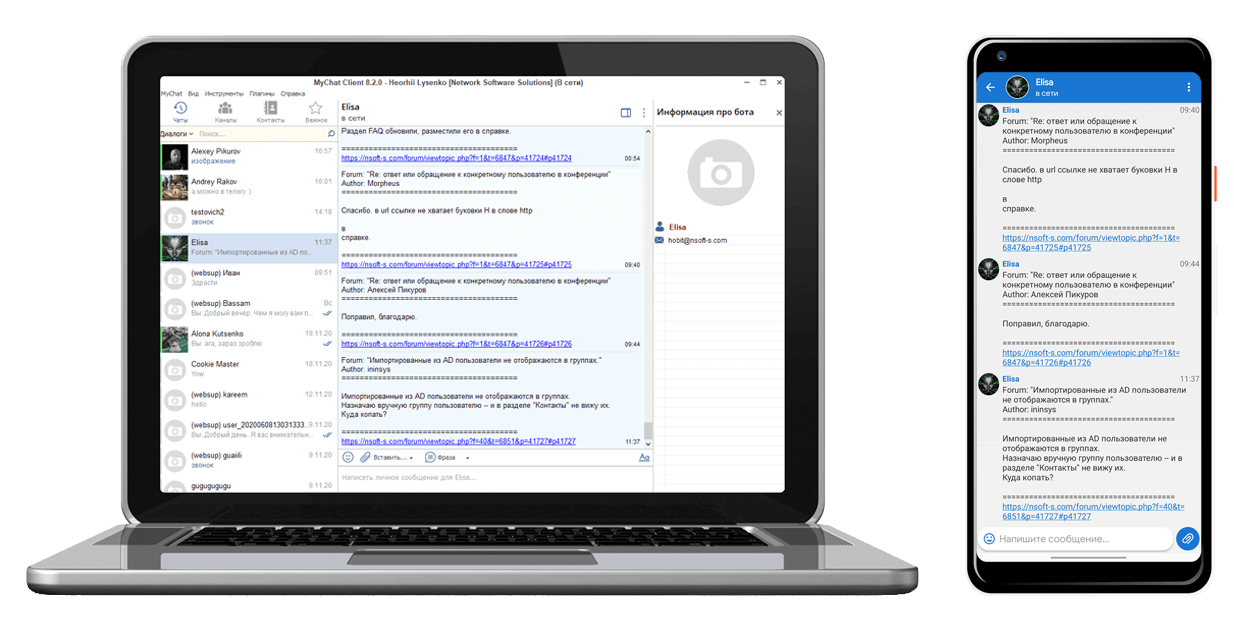 Вы просили — мы сделали. Теперь в чате можно находиться онлайн с нескольких устройств одновременно. Например, в Windows-приложении и Android: