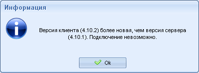 Ранее была возможна ситуация, когда клиент обновили вручную, а сервер — нет. И когда клиент подключается к серверу, настроено автоматическое обновление и на сервере есть дистрибутив клиента, клиент начинает тащить по сети себе более старую версию. Это смысла не имеет, так как downgrade невозможен. Теперь выдаётся уведомление и клиент отключается от сервера: